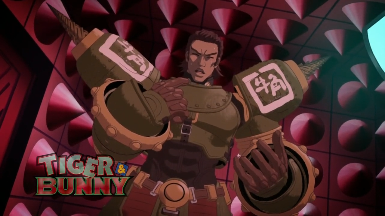 Tiger and Bunny gets the hero part right (at least when it comes to Kotetsu) so I’m going to cut them some slack on the villains. Besides, Maverick is an intellectually interesting villain at least. Not very charismatic mind you, but with a pretty good MO, backstory, and villain style.