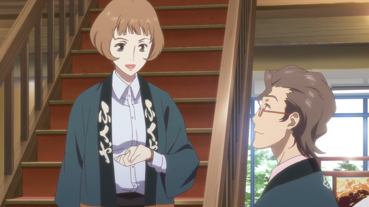 The anime could’ve really helped itself by just having punctuated moments of catharsis, but what really bothers me is the lack of intimacy between any of the characters. The cast will say that they love or care for one another, but actions speak louder than words. For example, Ohana and Ko, separated at first by a festival procession, finally get to be together so they… stand at least ten feet from each other? They don’t need to passionately kiss in public, but c’mon, they don’t even hug each other? In another example, Sui sees Ohana off for the final time, and the young girl is in tears… gosh, this sounds like a good time for the two different generations of women to embrace each other and signify the strong bond they’ve developed over the past year! — but no, Sui lightly caresses Ohana’s cheek.