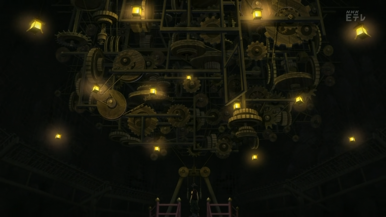 We never really get a good look at the rope puzzle. We only get random, chaotic shots of gears, pulleys and wooden knick knacks. For the moment, the puzzle frustrates even our hero but only for a moment. Daimon screams, cocks his head back, and suddenly, everything’s clear… for him, not us. Well, the audience doesn’t get to play along and I think that’s a shame. The animation seems decent. The premise sounds kind of fun if a little corny. The characters don’t seem unlikeable yet even if Daimon’s kind of generic. As a result, there’s potential here, but Phi Brain just misses the mark. What’s the point of a puzzle anime if I don’t actually get to solve the puzzles too?