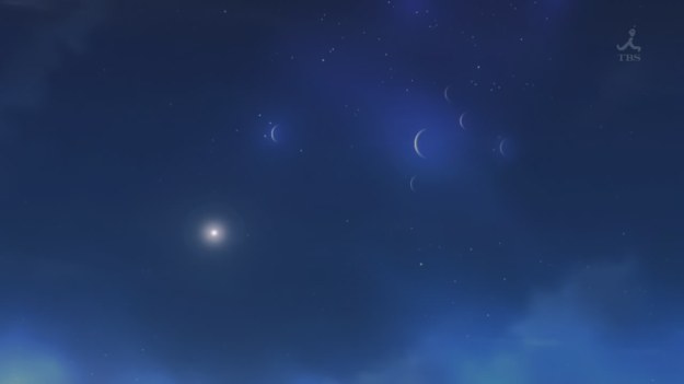 Why not spice things up with some mysterious floating continents? Why not put in some bizarre geological structures — set pieces that the action could be choreographed around? Well, we do see some really tall, giant hoodoos that, apparently, the characters live within. Still, when the action really kicks in, the world around the characters are reduced to just wide, open space. Where’s the imagination? I’m just asking for a little more spice in the anime than six moons hanging in the night sky. Even if you argue that my suggestions would move the anime too far into the realm of fantasy, c’mon… steampunk is fantasy.