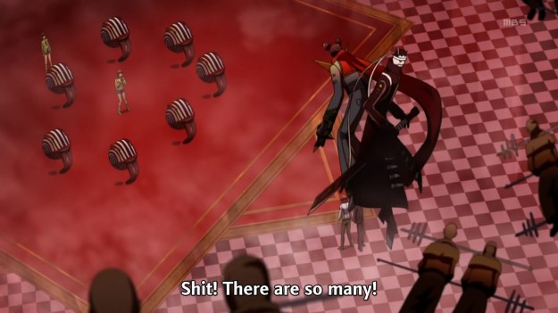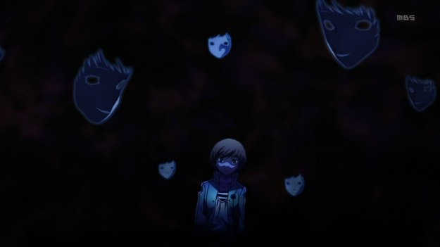 I like the idea behind this scene; its execution just leaves something to be desired. Still, Persona 4, as an adaptation, needs more of this sort of thing. The anime adaptation may lack the interactivity that made the original special, but it can nevertheless rely on the strengths of its medium. And what are those strengths? Cinematography. Fans of the game already know that Chie will come to grips with her darker side. Still, it doesn’t hurt to spice the pivotal moment up with some flair. The masks representing facets of Chie’s conflicting nature is thus a good idea. Unfortunately, the adaptation doesn’t really try to realize the idea to its fullest extent. All of the masks look the same and the end result is that the scene looks lazy. For instance, if they all represent Chie, it wouldn’t have hurt to vary some of the masks’ expressions.