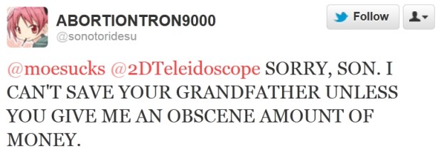 Other things not easily explained: Jin demands 10,000 yen, grandfather and rich kid are like no but the woman still gives him 10,000 yen. The first doctor angrily asks if the kid has money but Jin just shoves a bunch of coins and wadded up business card and withholds the fact that he has 10,000 yen until after he’s been rejected. Why did he do that if he wanted to so desperately save his ojichan? Lastly, we were also supposed to feel empathy for Jin in that moment because his ojichan was already dead and he was going to a doctor for help. Sure he was rejected but it’s the innocence of Jin we are supposed to identify with not his downtrodden state.