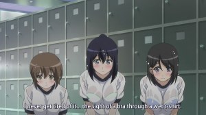 Oh, and we now know that the folks working on Dekinai don’t actually know any women or girls; those girls in gym uniforms obviously wouldn’t be wearing regular bras in real life, they’d be wearing sports bras! DUH!