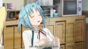 Gotta make sure viewers know where the boobs are. On another note, there’s suddenly a huge emphasis on big boobs now in anime. Since anime is cyclical and everything, start buying up your tsurupettan stocks now for the fall.
