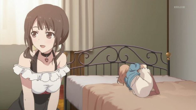 So that’s when Sawa slaps Konatsu on the ass (really?) and tells her that they can’t turn back now! They’ve come too far! Let’s just go out there and sing! But did anyone find it funny that no more than forty seconds into their duet, Konatsu’s brother shows up, i.e. presumably with the rest of the club: