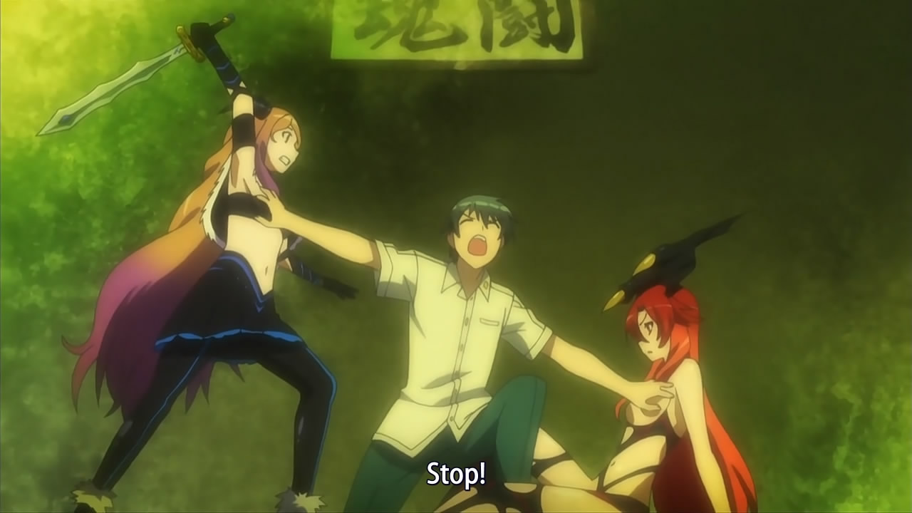 Kampione! isn’t as perverted as other shows, but it can deliver with the generic goodness. First, shrine maidens. Second, shady figures going “OMOSHIROI” over and over. Finally, a silly fight between the harem lead and the blonde girl because she just has to test his powers! These are only worth 50 points each, but with the new alliance, every little bit counts!