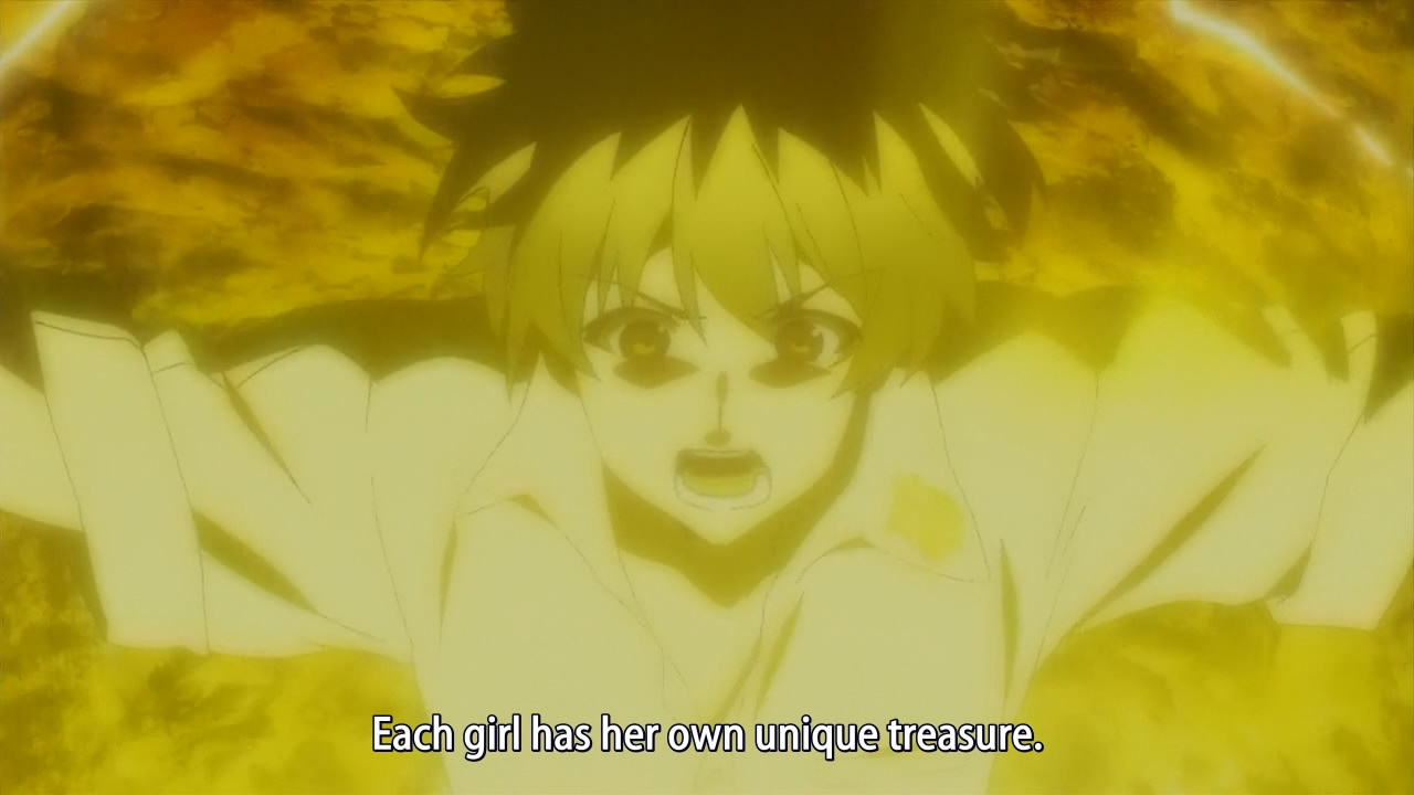 The same thing happens every week: an enemy gets the upper hand on Lisara, she reluctantly accepts the harem lead’s horniness, she wins, so on and so forth. The only difference is that you might get to glimpse a different pair of boobs in every new episode. It’s like watching Star Driver all over again, but there’s no hip shake to save the day.