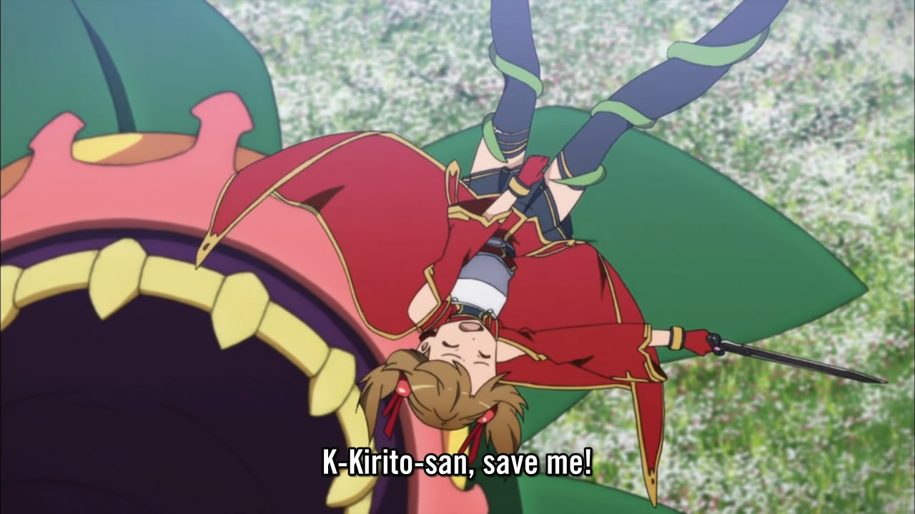 I still don’t get why those tentacle monsters didn’t kill Silica. In the last episode, it was stated that Kirito’s high level boosted the monsters’ levels. However, this didn’t seem to be the case this episode. I’ve heard some people mention that there’s a level cap… but this hasn’t even been brought up in the anime. And if there was a level cap, why was it so high in the last episode? (I mean, the dungeon was pretty much about their level except that trap, it seemed like)