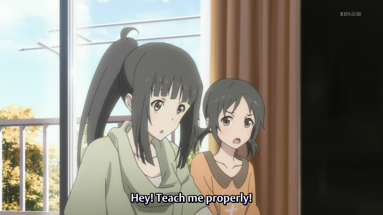 Some of you might feel bad for Wakana, because she lost her mom at such a young age. Hell, she might also lose her pet cat as well. Others might actually enjoy the fact that she got her comeuppance, so to speak. I approach the melodrama from a different angle: I feel sorry for Wakana because the show feels the need to contrive a conflict between her and her mother in such a fashion. Having seen Hanasaku Iroha, these transparent attempts to tug at the heart strings just stick out like a sore thumb.
