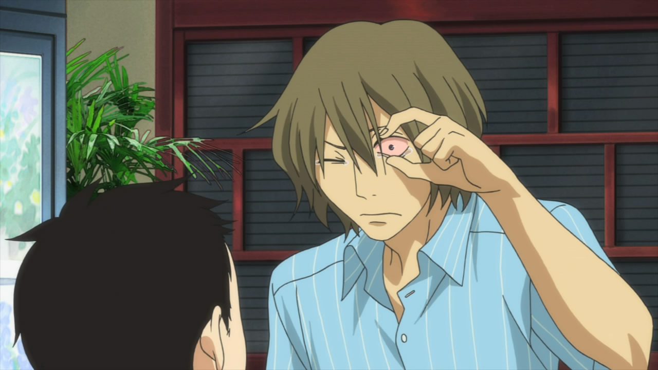 • Shortly thereafter, Atsushi begins to cry and his eyes turn pink. What managed to irritate his eyes? Well, I don’t think this question is all that important to address. Rather, what does this part of the scene signify? I’m always speculating, but if we consider the idea that our eyes are the windows to our souls, then is there perhaps some incompatibility with Atsushi’s soul being in Hazuki’s body? Or does this moment simply reinforce the idea that Rokka can’t recognize Atsushi because his eyes are unclear?