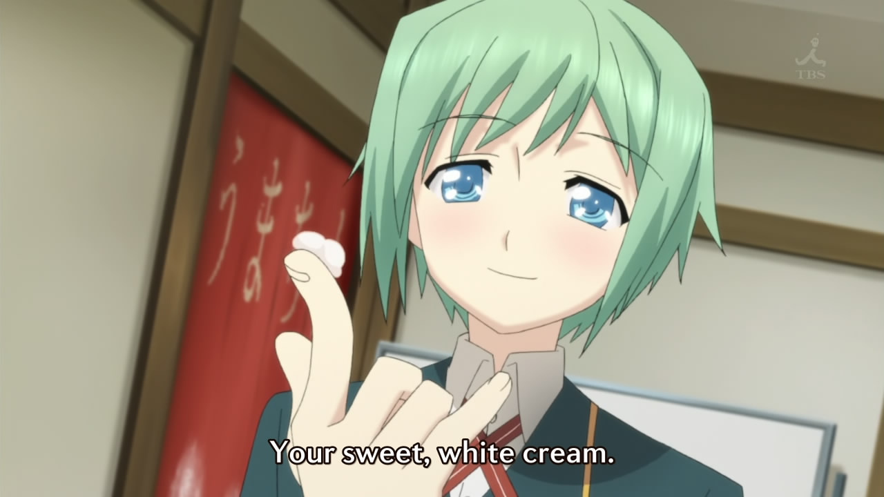 Do you remember how the fourth episode ended? A girl had her panties stolen by bullies. Yep, I’m not joking: in Japan, even bullies will sexually harass you. So do you think the anime will decide to continue this plot thread? Do you think the anime will decide to go with a story with any sort of urgency (even if it’s a little hammy in execution)? No! Instead, have a baking montage instead. Yes, why ramp up the tension and keep viewers glued to their seats? Clearly, we are already riveted by Oojima’s ability to roll shit up. Chocolate is the special kind of shit harem in that it is agonizingly boring (250). A perfect mix of drama, intrigue and love my ass.