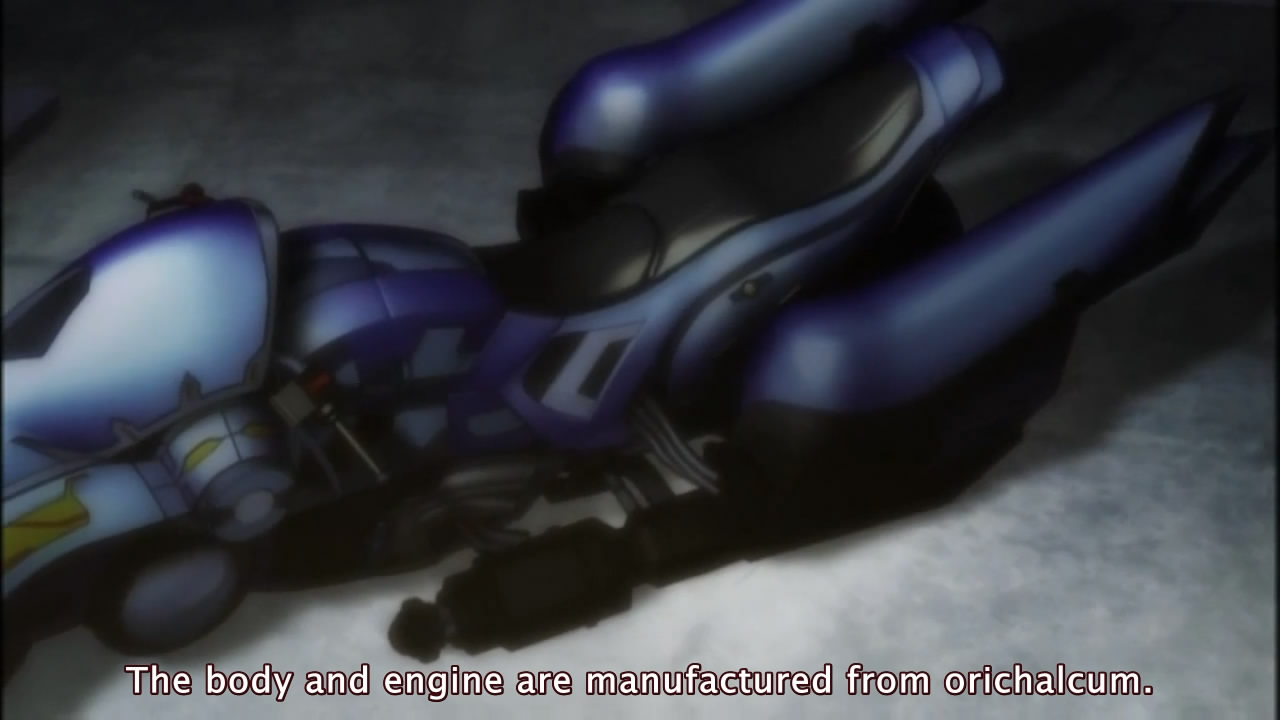 We have, uh, a bike made out of orichalcum that will electrocute any rider it deems unworthy (100) ’cause, y’know, bikes are sentient. Ousawa gets really worked up too when he learns that the bike used to belong to his dad. Fuck you, dad (250)! The really shitty harem part comes in when a girl tries to touch the bike. Y’see, Ousawa is strong; when he gets electrocuted, he will only get knocked back because he’s devoting all his energy to maintaining the integrity of his clothing matrix. Silly girls, on the other hand, have no ability to maintain their clothing matrix. So when they touch the bike…