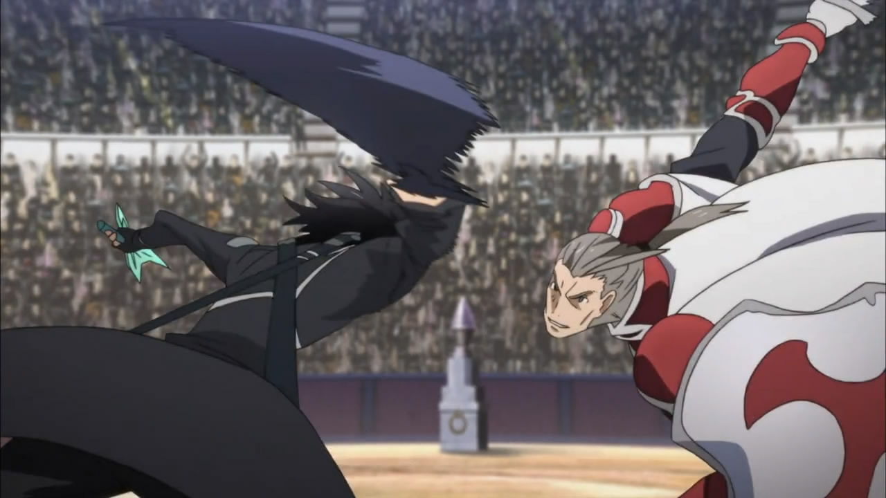 • I’ve always maintained that fight scenes are powerful narrative-wise when they act as externalizations of the conflict within the characters. So y’know, the conflict here is a fight over both Kirito and Asuna’s freedom, which sounds compelling on paper, but then you realize there’s really nothing forcing our two protagonists to hold up their end of the bargain. Just walk away, right? Even better, just warp away.
