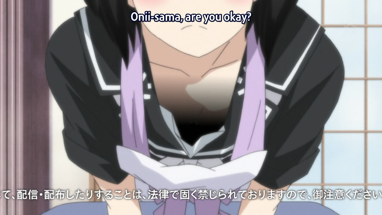 And thus begins Imouto‘s 11th episode; Shougo wakes up from a terrible nightmare! How do I know it’s a nightmare? Look at the screencap above — how could it be anything but! When we last left off, a girl by the name of Yuzurina had barged her way into Shougo’s life and claimed to be his sister. Even worse, it seems as though she’s planning to shame our rich playboy. And worst of all, nether cleavage!