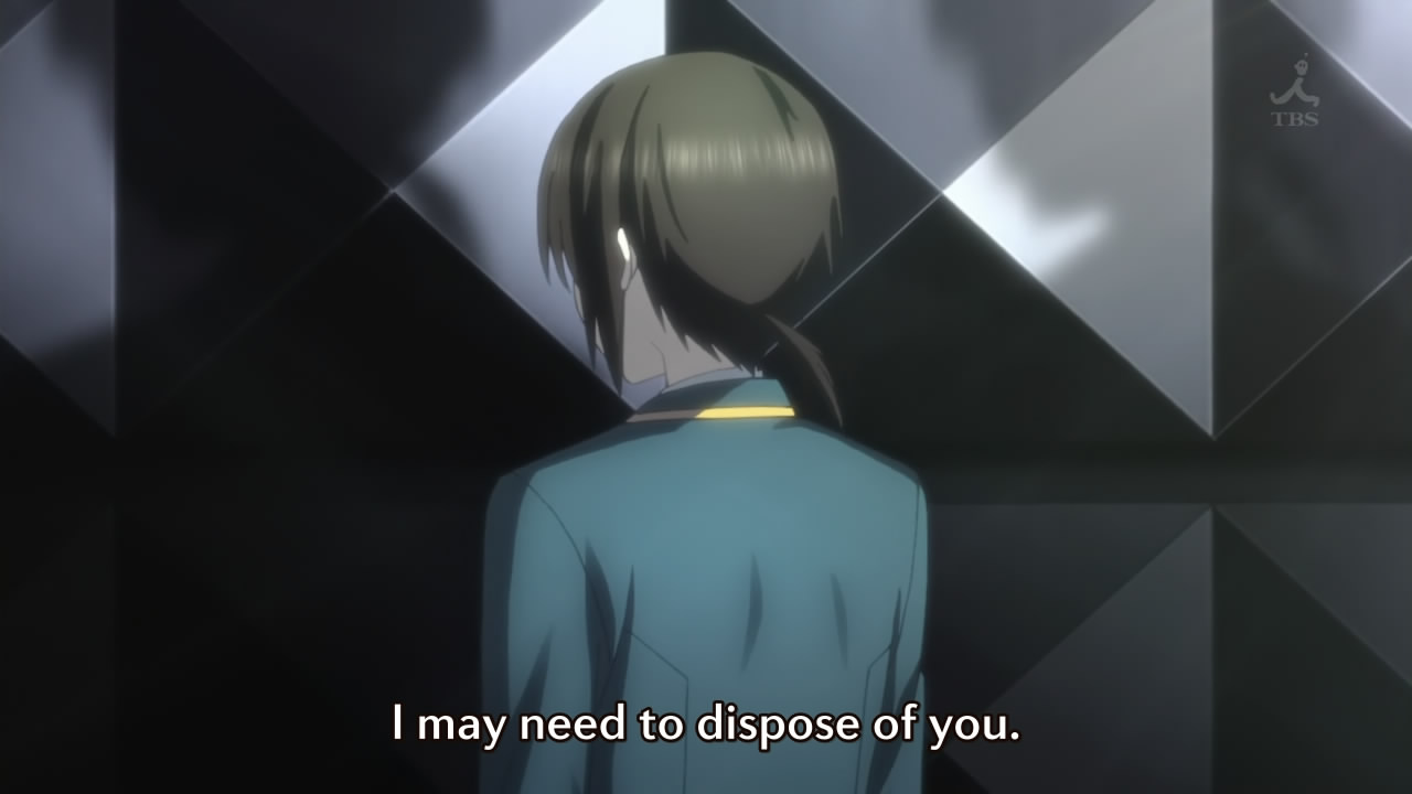 It just isn’t very believable. What did Shougo realize anyway? Probably something to do with Miyabi and the entrance exam, but I’ll leave that to people who actually give a damn about the plot to dissect. Honestly though, besides Shougo’s initial bit of stupidity, this episode is surprisingly lacking in much to pillory. What follows is a boring ass montage of a date between Shougo and Miyabi, but there’s nothing there to take note of unless you’re interested in a plot discussion. With the dramatic reveal at the end about Yuzurina, there can’t be more than an episode left, right?