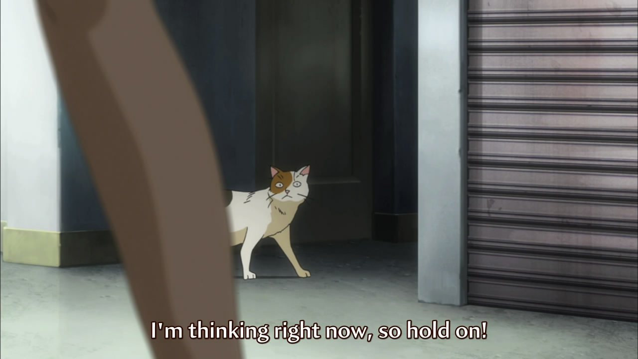 Back to Yuzurina, Shougo and their riveting dinner conversations, Yuzurina feeds Shougo the bullshit that Konoe was really at his father’s funeral. Wait, wouldn’t that mean Konoe lied? Well, surely I’ll believe this strange girl who claims to be my half-sister — using evidence from a lady who we know is scheming against me, by the way — over a friend I’ve gotten to know (250). Shougo… he’s gotta be missing a chromosome or two. So when he sudden gains this epiphany later on in the episode, it’s like what?
