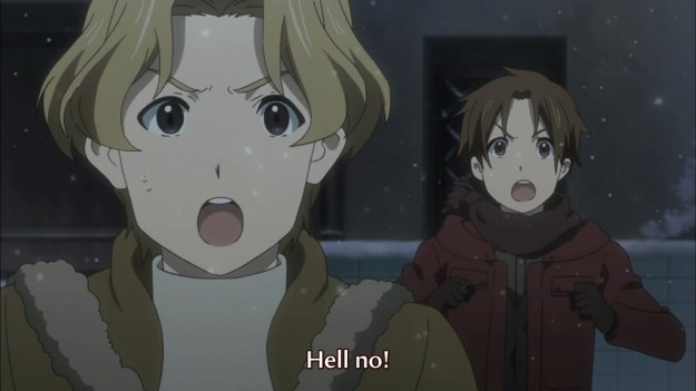 So Aoki decides out of nowhere to pay a visit to his ex-girlfriend. It’s one of those “I gotta be honest with myself” moment where Aoki confirms his true feelings for Yui (did anyone think he didn’t really love her?), but I’m not sure why he needed to drag his ex into it. Also, did anyone else find Nana’s reaction a little strange? After years apart, Aoki comes out of nowhere to tell her that he loves someone else now. Uh, okay? Had I been the ex, I would’ve just said, “Who cares, buddy? You couldn’t have just sent me an email?” But she smiles because they’re all standing in the snow, so shh, this is a poignant moment — a breakthrough!