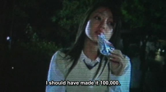 After killing his “wife,” Masuoka lures a high schooler into making a gonzo porno. I can’t help but link this poor girl’s fate to his wife’s claims that their daughter has disappeared. Hidden underneath all the glitz and glamour of Tokyo (or any other metropolis) is a darker underbelly where young girls (and to a certain extent, boys as well) are preyed upon daily by those looking to make a quick buck. Girls aren’t merely convinced to do pornographic films, which might at least be regulated by some sort of governing body (I actually don’t know; this is just speculation). There are many girls like Masuoka’s second victim. These girls are often tricked by the promises of money to engage in amateur pornography, where there is perhaps less oversight, and enjo kosai.