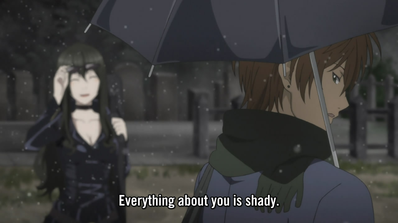 This was about what I would’ve expected for a first episode here. At this pace it might take two or three episodes to finish setting everything up, including — as you pointed out! — the shape of an actual plot. I don’t know that there’s much the writing staff could do to set everything up in a single episode without getting pretty far away from the original manga sequence, either, although from what I saw they did a decent job of moving forward those things they could move earlier. It’s a bit disappointing you never see double-length premiere episodes for anime the way you tend to for live-action western tv, but it is what it is.