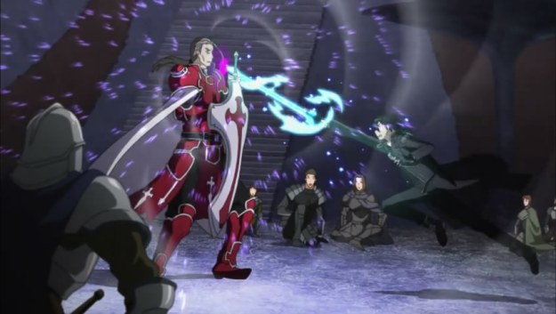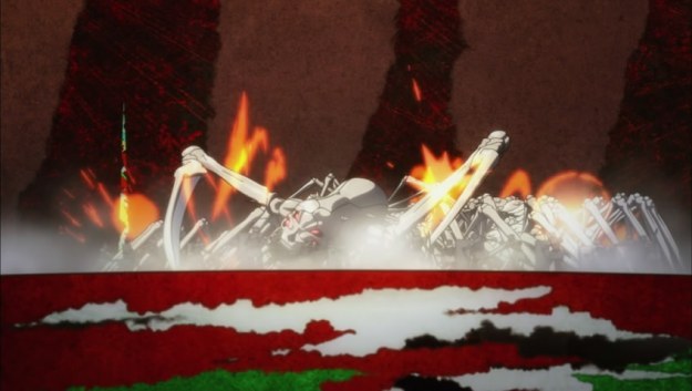 • Even in the penultimate fight, the animation feels lazy. Halfway through our opening, A-1 Pictures just completely gives up. So we’ll zoom really far out to burn some time…