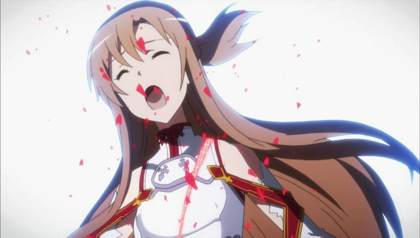 • Asuna: “It’s the happiest I’ve ever been in my life.” Yes, yes, a 17 year old girl is happy to have died in her e-lover’s arms. No, I didn’t waste my life or anything… why do you ask?