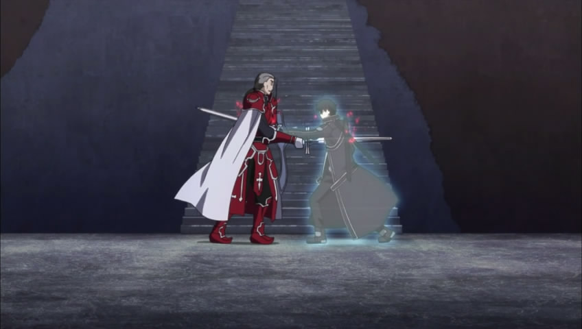 • Our commander is revealed to be Kayaba Akihiko, i.e. the creator of the game. More importantly, he is the lamest storyteller. Kayaba was planning to betray everyone had they reached the top floor, but since Kirito had to go and ruin the fun, you get to have the final boss now. What? No special transformation? No “One-Winged Angel”-esque song blaring in the background? No pontificating about mankind’s struggle against the shackles of Western religion? Pfft… and you call yourself a Japanese RPG.