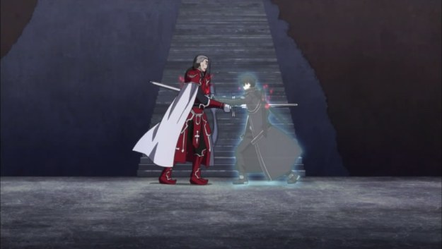 • Kayaba gives Kirito another chance to fight him mano-a-mano. Now, the smart MMO player would likely play it safe. In fact, the smart MMO player who knows he has a kickass e-waifu would definitely play it safe. Why risk losing it all here when my e-waifu and I can grind some more, get some even better gear, and ensure complete victory? But we’re talking about Kirito. He’s the Gary Stu. As such, he’s got to be the hero. His dick wouldn’t allow anything else.