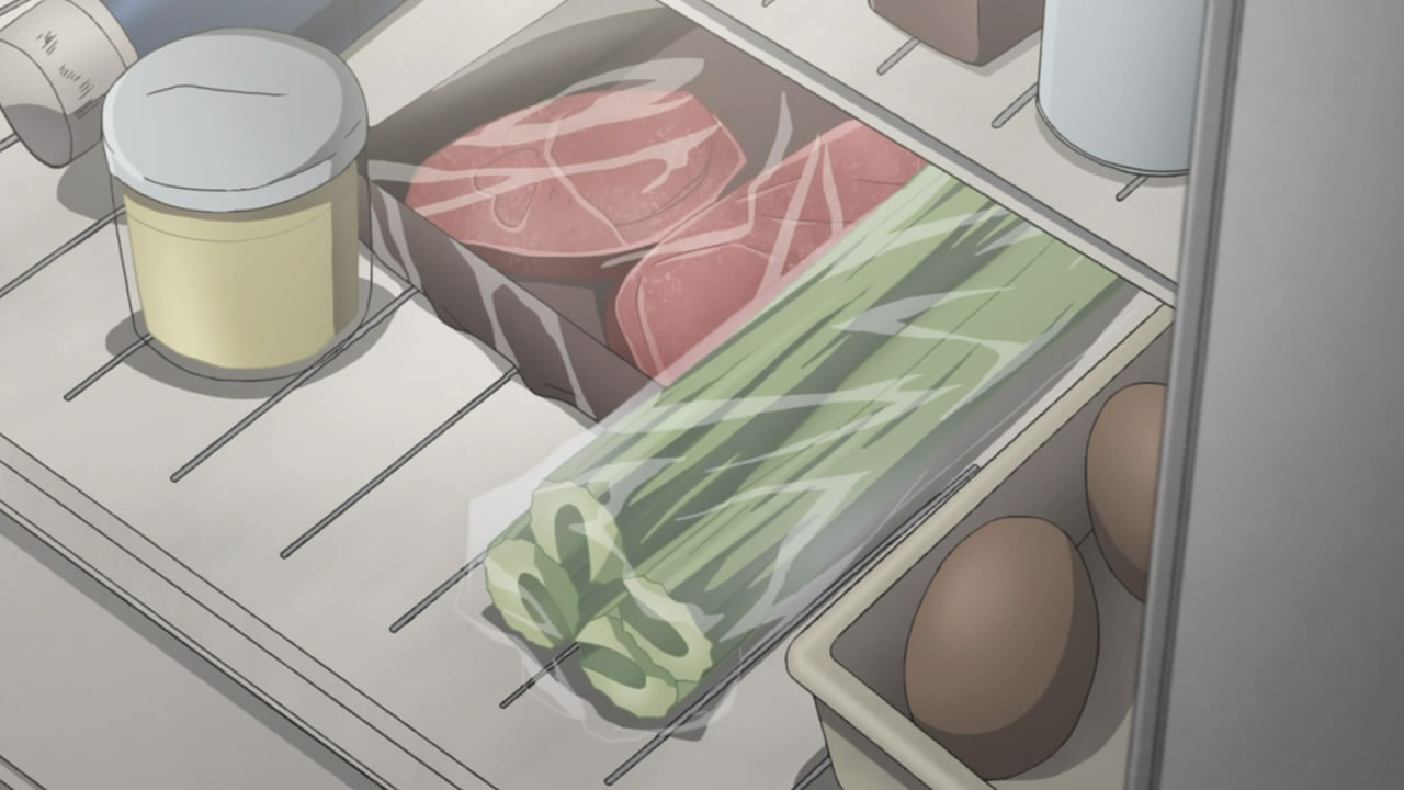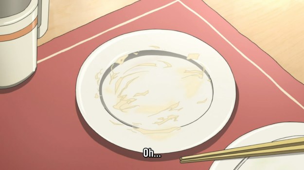 • We get to see that the younger Yoshino has finished his celery for no damn reason other than the fact that the anime is obsessed with the vegetable. Plus, Yoshino’s telling this story to Hakaze, so I have to imagine he decided out of nowhere to include this little anecdote: “But the second time around, I put mayonnaise on the celery and had no problems finishing them!”
