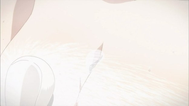• I’m sure A-1 Pictures must love these flying scenes ’cause all the characters literally do is turn horizontal and zip across the background. They don’t move a single limb or even so much as twitch their wings.