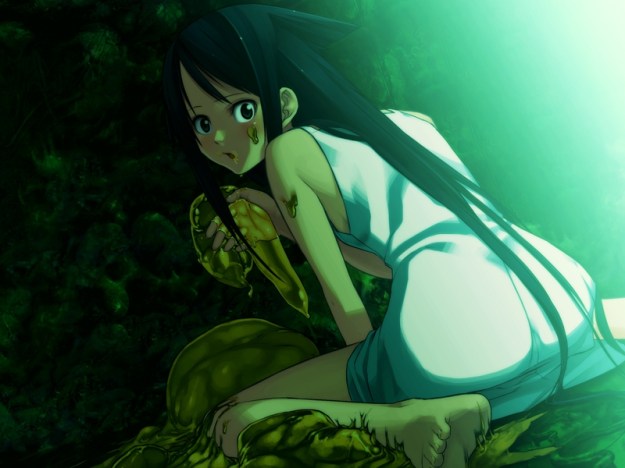 In the early going, Saya no Uta seemingly wants to make a similar point… as the main character’s relationship with Saya deepens, so does his moral order continues to deteriorate. But the story cops out. Instead of bucking tradition, i.e. fucking something truly grotesque and abject like Cthulhu or a corpse, Saya is the perfect pettanko or some shit. The story wants to have its cake and eat it too. Oh yeah, life has no meaning, who cares about morality, who cares about anything but pleasure… but uh, we’ll stop short at the girl. Make sure she conforms to anime’s ideal vision of beauty.