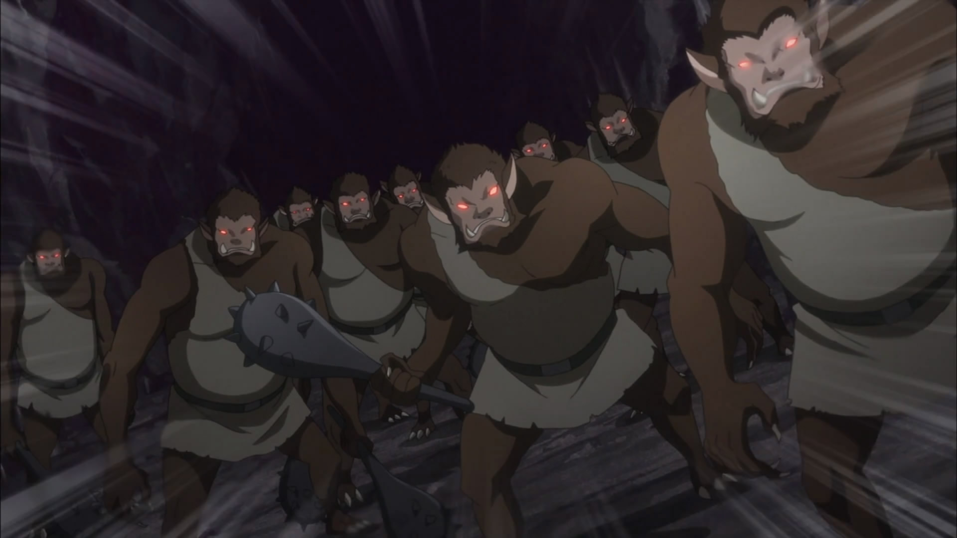 • Heh, the enemy is tank-and-spanking Kirito. Way to be done in by basic MMO strategy 101. You’d think with his high level and super speed, he could just run around the clunky, phalanx formation that the frontline Salamanders are employing.