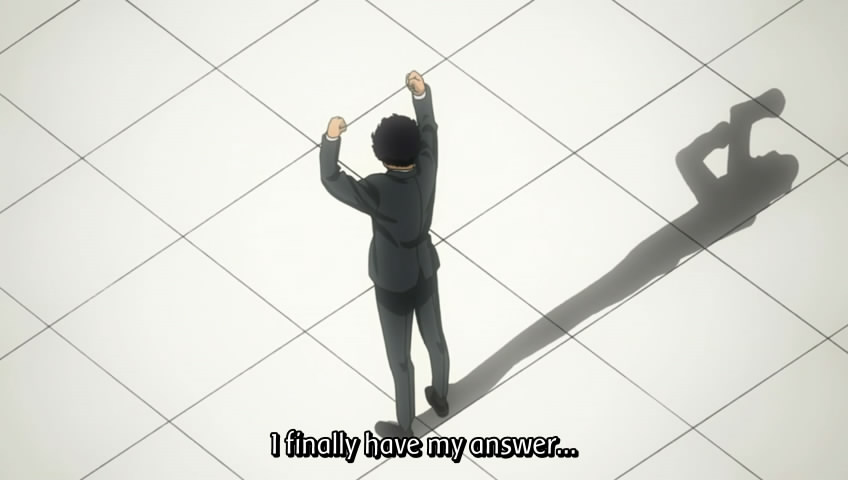 I need a reason to care. I need a reason to root for one side or the other. It’s not about having a simple premise. It’s about having a premise that I can emotionally relate to. For me, stories boil down to whether or not I’m able to emotionally connect with the characters and empathize with their situation. I don’t sense that level of pathos here. Why should I care if Shiro’s innocent or not? That’s a cool hook, i.e. something to open the story with, but after seven episodes, I need more than a hook. You can be as complicated as Finnegan’s Wake if you want, but at the end of the day, I need to feel an emotion beyond “Huh, what’s going on?”