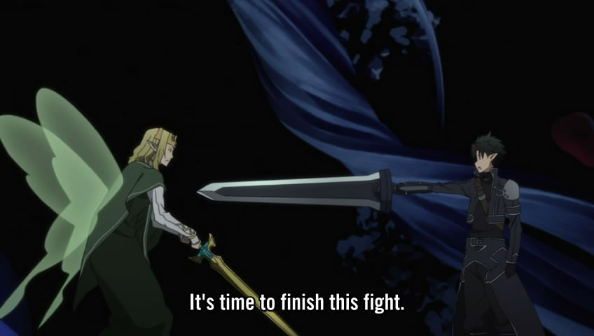 Well put. I felt really cheated to be honest regarding Asuna, especially after the whole SAO arc (before ALO). In the opening song, we get to see Kirito and Asuna take on the whats-its-name goat demon, but instead of letting Asuna be kickass in the show itself nooooooo, Kirito has magically obtained the ability to dual wield and render her useless. We saw that early on when they worked together it was decent at least, but that was it. She’s supposed to the this ‘Lightning Flash’ or something yet cowers behind Kirito and can’t even beat that Kuradeel guy OR anything else significant for that matter.