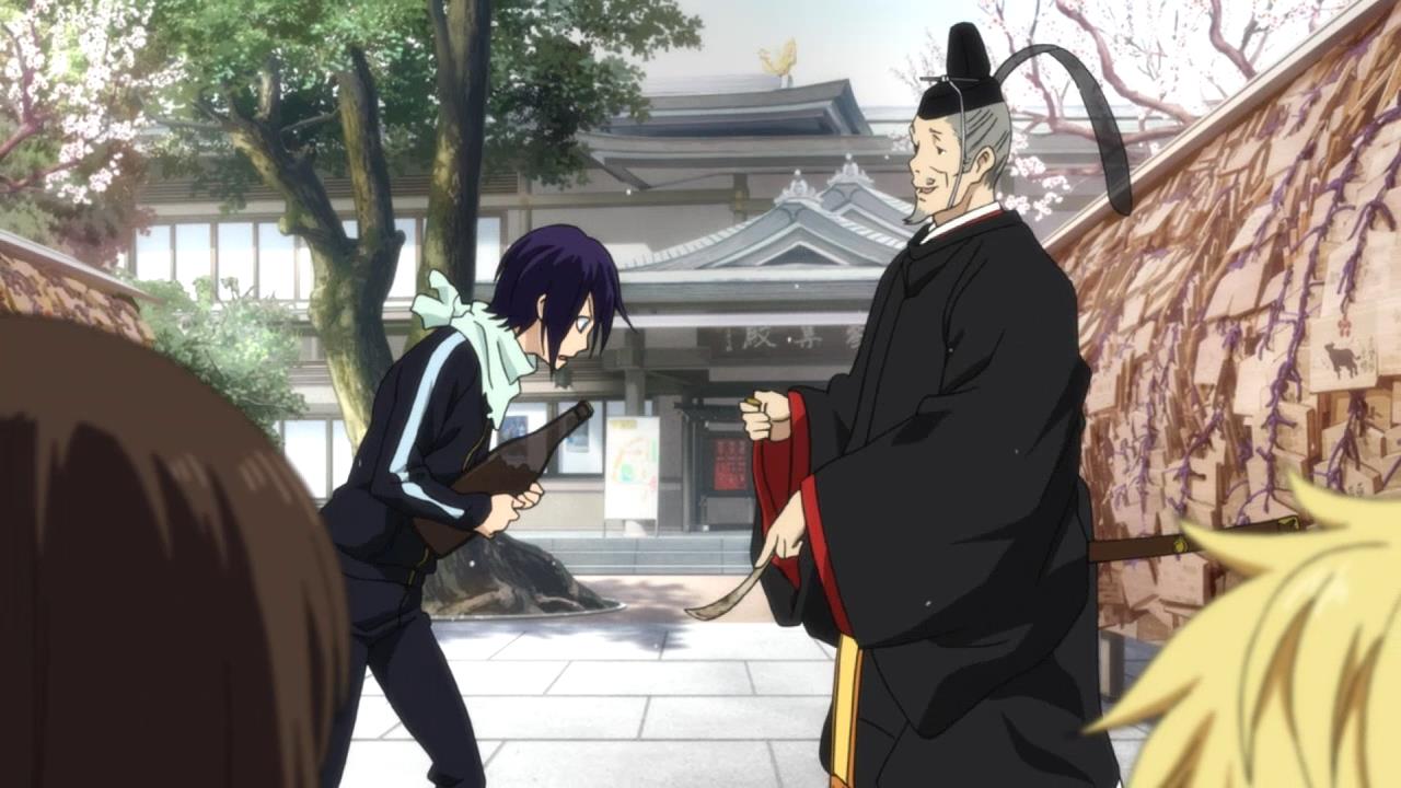 • In a condescending way, Tenjin states that he’s too loaded up with wishes and requests, so maybe Yato could “take care of some Phantoms” for him. I guess beggars can’t be choosers, but most of us would be humiliated if put in the same position. Plus, Tenjin’s kind of a dick about it: “I mean, you have nothing else to do, right? I do know that you sleep in my shrines without permission.”