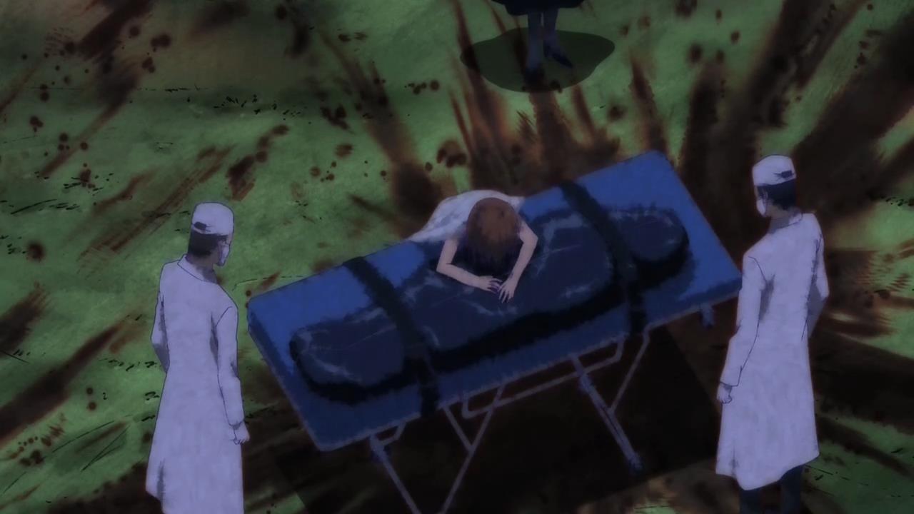 Wow, what amazing animation! Just to be clear, I believe most of this week’s events occur before last week’s events. So to take stock, Yume underwent her transformation at the park and attacked a bystander. Afterwards, Utsutsu tried to approach her, but she attacked him too. Maria and her people recovered Utsutsu’s body, but he broke free and killed two scientists in the process. Maria lets him go so that he can serve as live bait. Then, this is what we see in last week’s episode: Yume feasting on her brother’s flesh in the restroom. Again, I just wanted to recap things so we know where we are in the narrative.