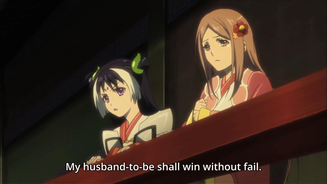 Last but not least, we have the buxomy blonde from the West: Jeanne. At one point in this episode, we cut to a short scene of Jeanne practicing her calligraphy. Out of nowhere, she starts thinking about Nobunaga and how he’s now married to Himiko. Then the scene ends. Yep. That’s it. In the early stages of the episode, our heroine — arguably our main heroine — has nothing to contribute to the story other than that she’s so jealous… but she doesn’t even know why she’s jealous. She has yet to be honest about her ~true feelings~ for Nobunaga. Ah, Jeanne, Jeanne, Jeanne… you’ve turned in quite a burning performance. What a true maiden you are!