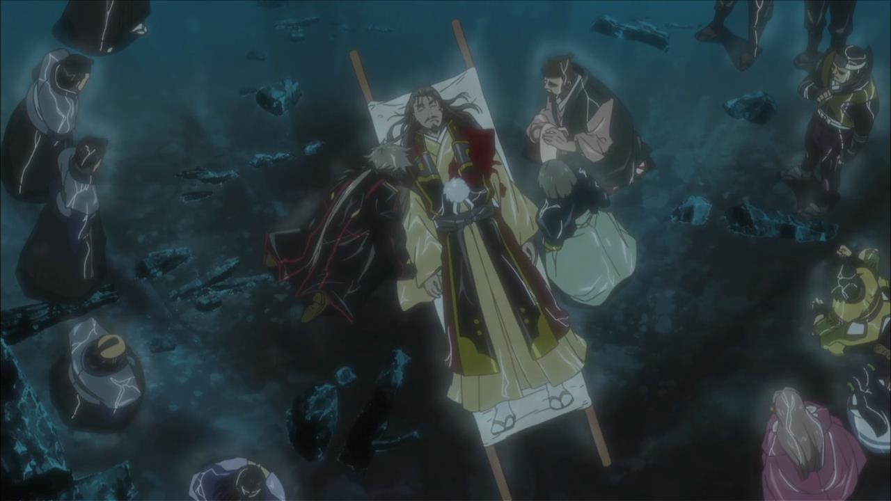 And this is exactly what Nobunaga does, but his duel with Shingen is interrupted when Caesar emerges from the Rhine River some dinky river and announces his intent to help Shingen. Despite this, he’s really only interested in Ichihime, so Caesar begins to charge towards the castle. Seeing this, the now injured Nobuhide throws himself in Caesar’s path, but ends up having his war armor impaled through the chest by his foe’s weapon. Nobunaga then goes berserk, forcing both Caesar and Shingen to retreat for now. The following morning, a dying Nobuhide says his parting words to his troubled son, then passes away. The episode closes with Nobunaga swearing to get his revenge on Caesar.