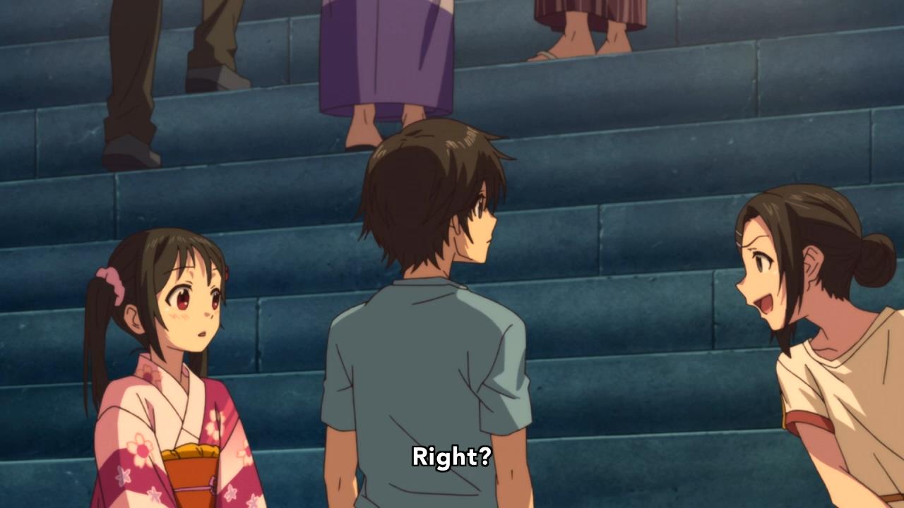• I still find myself chuckling from time to time when I watch this show. It isn’t gut-bustingly funny, sure, but it’s good enough without having all of the other… sordid trappings one comes to expect from anime. In any case, it seems like everyone and their mothers — and I mean literally their mothers as well — has caught on to the fact that our heroine has a crush on Koji except, well, Koji.