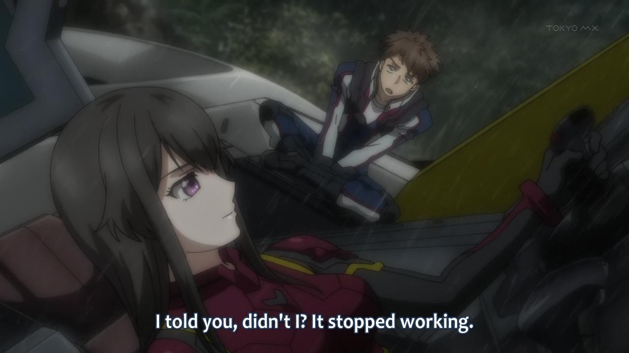 Episode summary: As we expected, Aoba and Hina are stranded on an island. Like every island in every story ever, it comes equipped with a cave for our two love birds to take shelter within. It doesn’t take long before the island becomes overly-attached to our heroes, however, and a landslide traps them inside the cave. Eventually, Aoba uses his shounen powers to break them out of the cave, thereby saving Hina from drowning (again). To top it all off, he even allows her to contact Zogilia through his Valiancer so that she doesn’t become a prisoner of the Alliance. All in a day’s work for the average mecha protagonist. In the end, he gives her that hairpin he got from the original Hina as if this would be a meaningful gesture or something, but it’s really not.