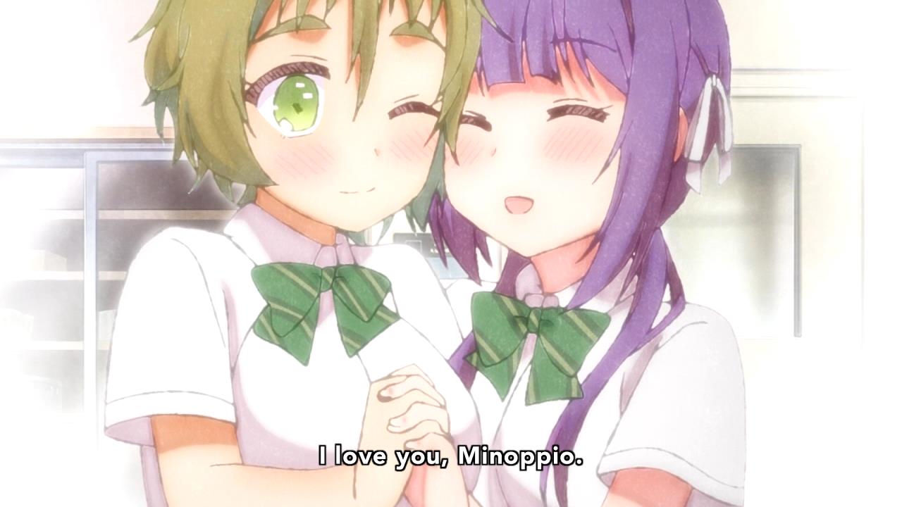 • But it turns out Kousaku is even weirder than we had initially presumed him to be. He literally sent Ringo nothing but vegetables. Imagine how you would feel if you just got cucumbers in the mail one day. Still, Ringo says she got letters addressed to her from a Kousaku, so what’s up with that? It turns out Minori was the one writing to Ringo. She only did it because she didn’t want the idol to think Kousaku was weird or anything. Boy, talk about unconditional love. So in the end, since it had been Minori’s letters that Ringo was reading, she embraces Minori instead of Kousaku. Oh boy, what a twist. My sides… they are in orbit or something. Nah, they’re not. This anime still sucks.