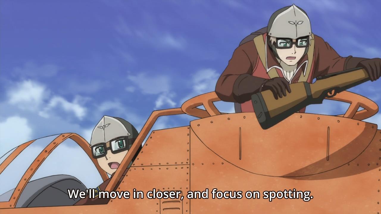 • Kal then goes on and on about how the enemies have made all of the girls of the show cry. Honestly, what else can the female characters of this show do? They don’t get to do anything cool. They just get to watch their boyfriends fly off and die, and in the meantime, they can cry. Yeah, this anime is chauvinist. I still don’t understand why the flight school was unisex just to have the girls do nothing.