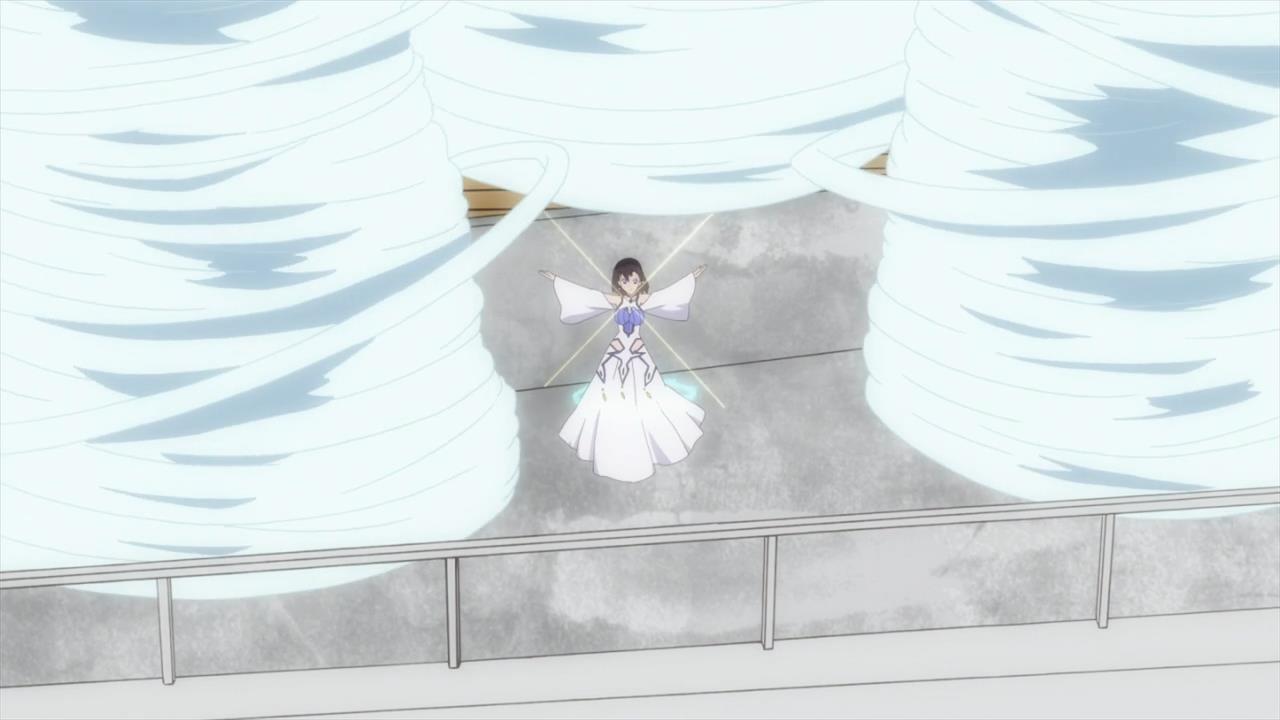Episode summary: The students help the military take down the enemy ship, but the Luna Barco takes heavy damage, and as a result, it’s going to go down anyway. Thinking that she’ll die here, Nina/Claire apologizes to Kal, but he forgives her and tells her to live. This allows our priestess to regain her ability to command the wind, which she then uses to protect her lover and float the Luna Barco back to Isla.