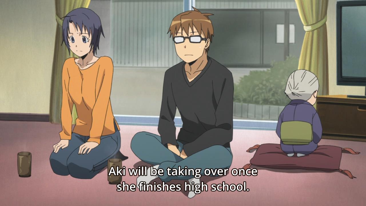 This isn’t a bad anime. It’s just that most of the time the anime’s really goddamn boring. The last few episodes have actually been pretty interesting to watch though. Why? Because the episodes are actually about the characters and their real lives. Y’know, none of that adopting and training a puppy bullshit. Man, I don’t want to watch that. That’s just fluff. That’s like eating cotton candy when I’m hungry for some meat and potatoes. Anyway, both Aki and Ichiro’s families are facing financial troubles. Despite this, Aki knows she has to tell her family now that she doesn’t want to carry on with the Mikage Ranch or she’ll never be able to. That’s the sort of thing I want to watch. I don’t give a shit about some damn horse-jumping competition. I really don’t. What I want to see are real human conflicts, and how the characters manage to cope with said conflicts. A lot of anime fans always say, “Well, you gotta have the boring episodes to really appreciate the sad ones.” I can never understand this mentality. You want to know what boring episodes do for me? They just make me want to turn the show off for good. I mean, I don’t need to eat a Big Mac right before a rib eye steak in order to enjoy the latter.