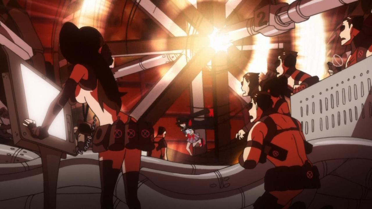 This episode reminded me so much of TTGL. The scene of Ryuuko cutting the core of the life fiber while the song played, with the whole Nudist Beach ship pushing in was very reminiscent of the attack on Teppelin.