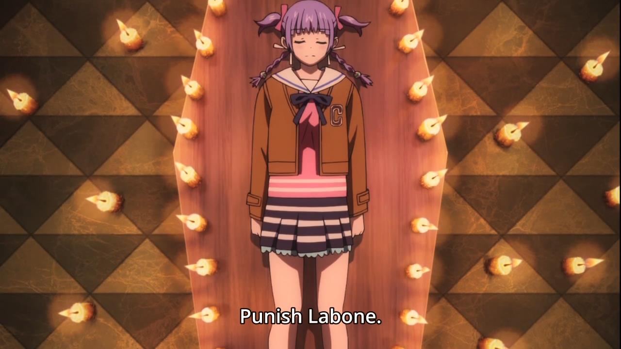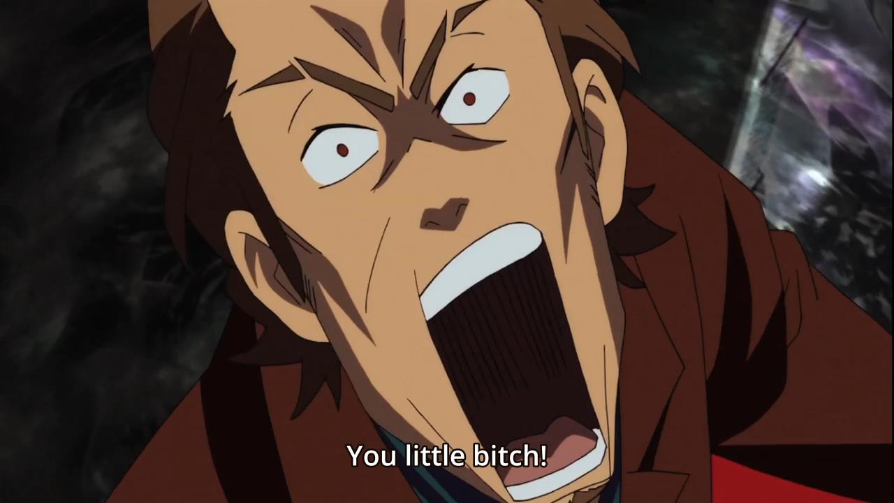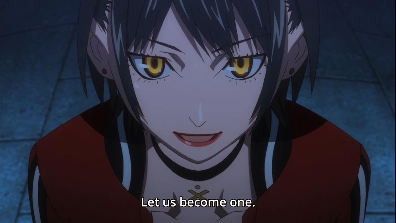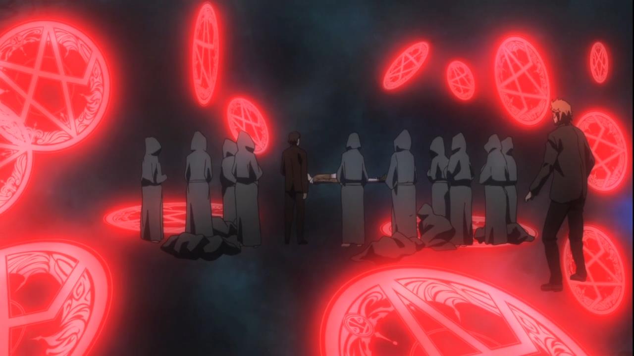 • But then Shizumu’s conscience gets the better of him for some reason. Why? Beats me. Despite murderous scores of people in previous episodes, seeing this poor, innocent 17-year-old girl being sacrificed in order to summon Lucifer is just… it’s just too much! He’s the cultist with the heart of gold! So now he gets to die.