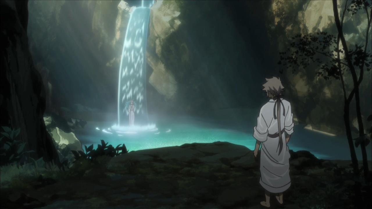 • Oh boy! Nobunaga returns to his waterfall! And who should he find there? Ichihime. So unfortunately, no manly screams this time. Just manly memories of shounen Nobunaga standing beneath said waterfall.