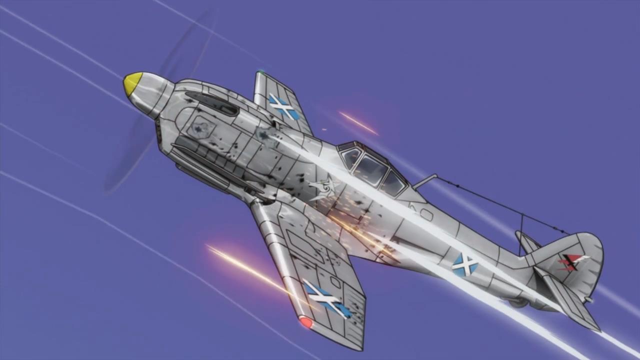 • And that’s it. We don’t even get to see Kal succeed in rescuing his girl. Apparently, that’s not a part of a pilot’s love story. Instead, we see him shoot down some infamous fighter, proceed to have a talk with Claire through the wind somehow (magic!), and then finally, fly off into the deep blue sky swearing that he’ll rescue her some day. That’s great. That’s just fucking great. Claire ends up having less than a minute of spoken dialogue in the last episode of the series. You can’t even be sure that she’s actually talking to him through the wind somehow. I mean, sure, that would be the most charitable interpretation of the scene, but you could also imagine that Kal had taken a bullet to the brain during that dogfight, so he’s hallucinating everything. In actuality, his fighter is plummeting out of the sky and into briny depths below. Ah, one can dream… But hey, he got to look cool in a dogfight at least, and that’s all the closure we need! What a fucking ending.