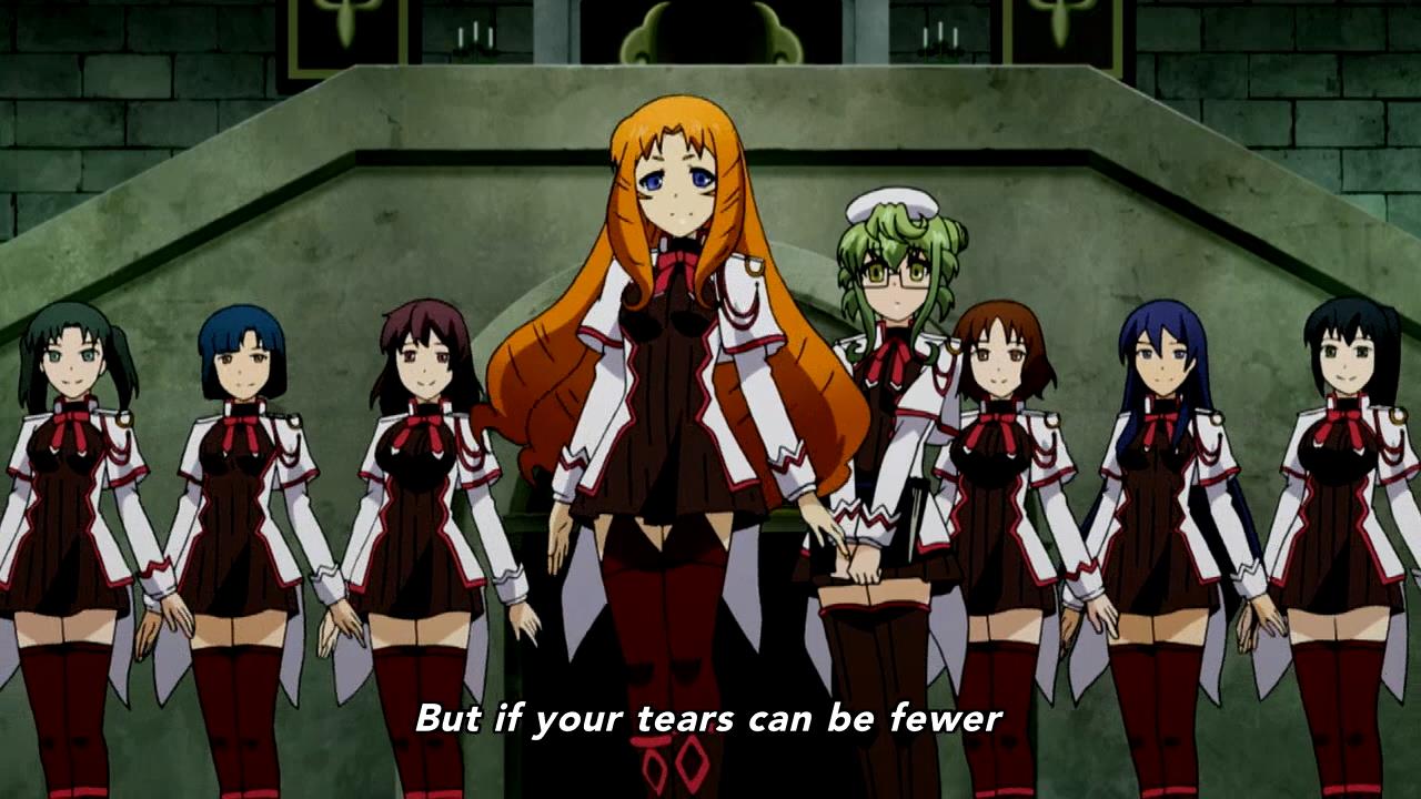 Three downed girls for a single haremette is a fair trade, I’d say. Silvia barks, “Don’t expect me to thank you,” but her cheeks are blushing, and her skirt is fluttering daintily in the wind. So y’know, the taming is already underway.