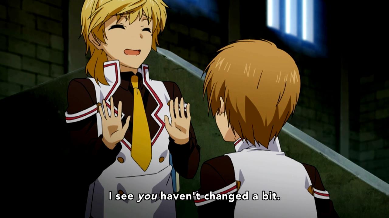 The blonde from the OP is actually a hardass, and her name is Silvia. Here, you can see her scolding her classmates just for standing and talking around a doorway. But it’s okay, ’cause she’s a princess. And as we all know, princesses are allowed to be bitches as long as the harem lead gets to tame them.