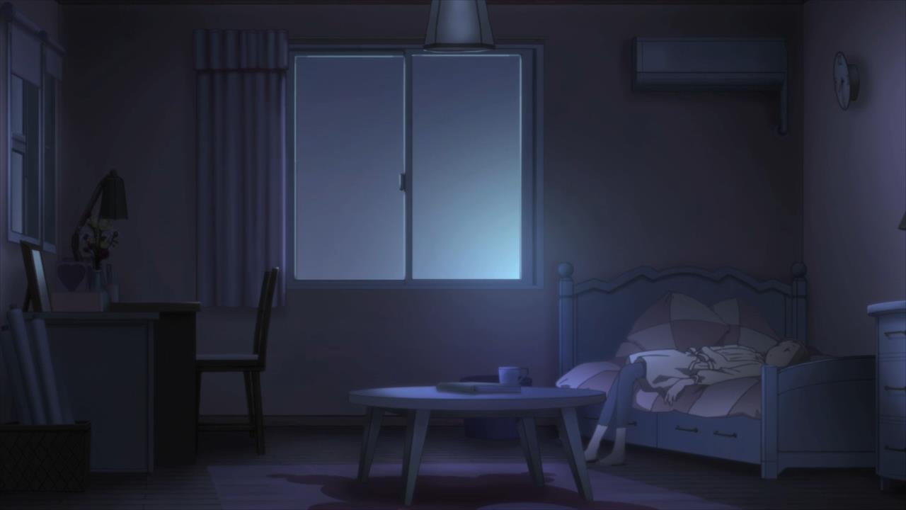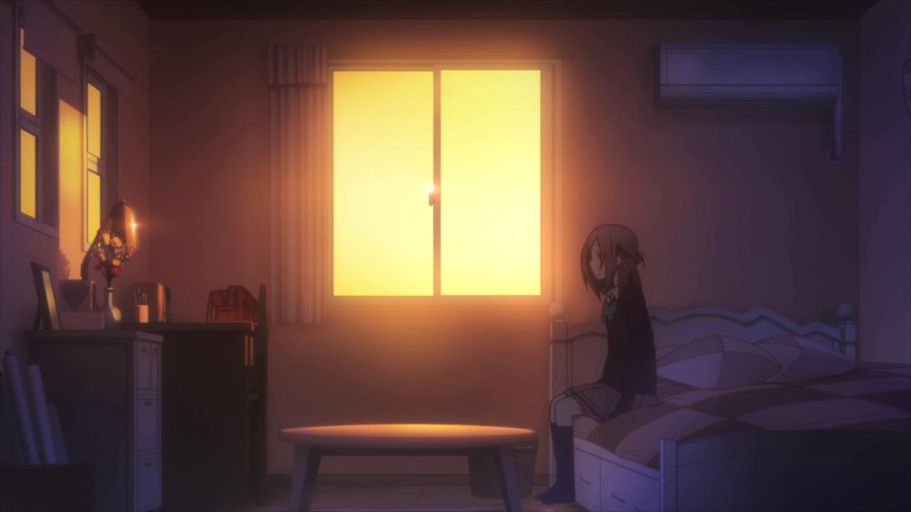 By this point in time, she has already revealed her condition to Yuki. But we see the room one last time in this episode. This time, it comes in the ED, which itself is a departure from the OP. Here, we not only see the room from a different angle, but the sun is even rising as the beams of light slowly sweep across the floor and the walls: